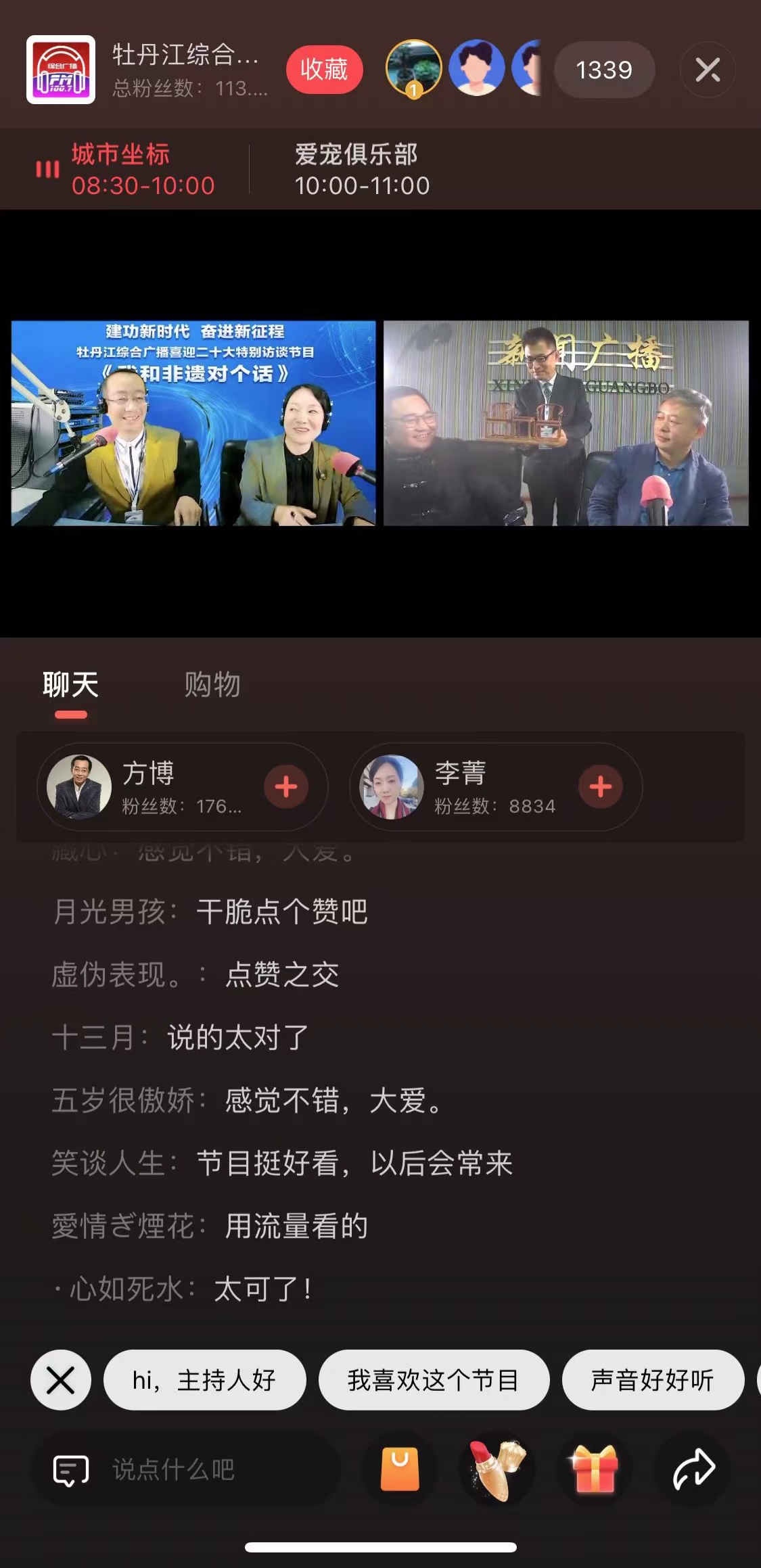 参加特别访谈的“黑龙江非遗新媒体传播与运营研修班”7名学员王媛、牛晓霆、于英斌、郭阎梅、张林、叶丽珍、王彦霞向听见广播APP端的2300多名视频观众和牡丹江新闻广播广大听众展示了自己的才艺,讲述了自己非遗保护传承、创新发展的生动故事,畅谈了美好的发展愿景。