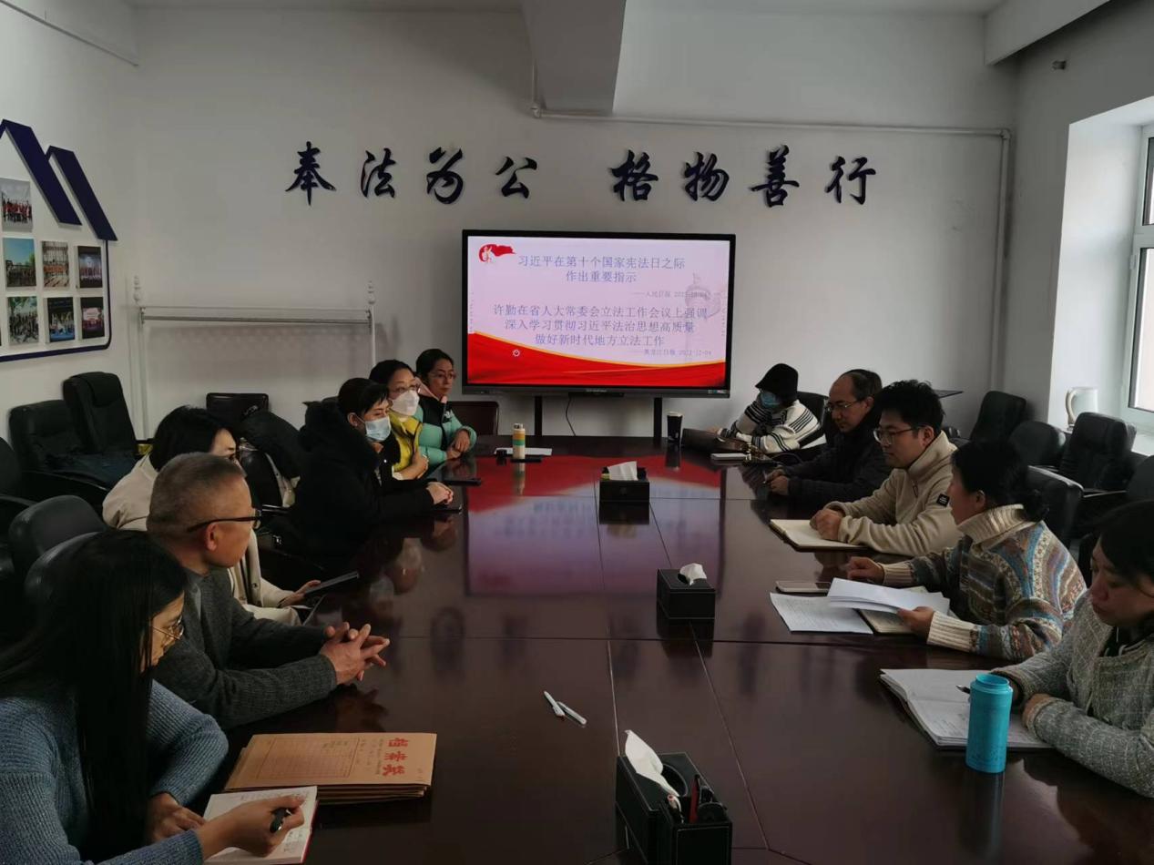 法学院组织师生深入学习习近平总书记在第十个国家宪法日的重要指示精神和省委书记、省人大常委会主任许勤关于深入学习贯彻习近平法治思想高质量做好新时代地方立法工作的工作部署。利用“宪法宣传周”活动契机,开展了宪法宣传专题演讲比赛、辩论赛、学术沙龙、模拟法庭等形式多样的宪法宣传活动。同时,法学院师生深入校园一线,发放普法宣传材料,做到“法治宣传时时刻刻、法律知识人人学习”。