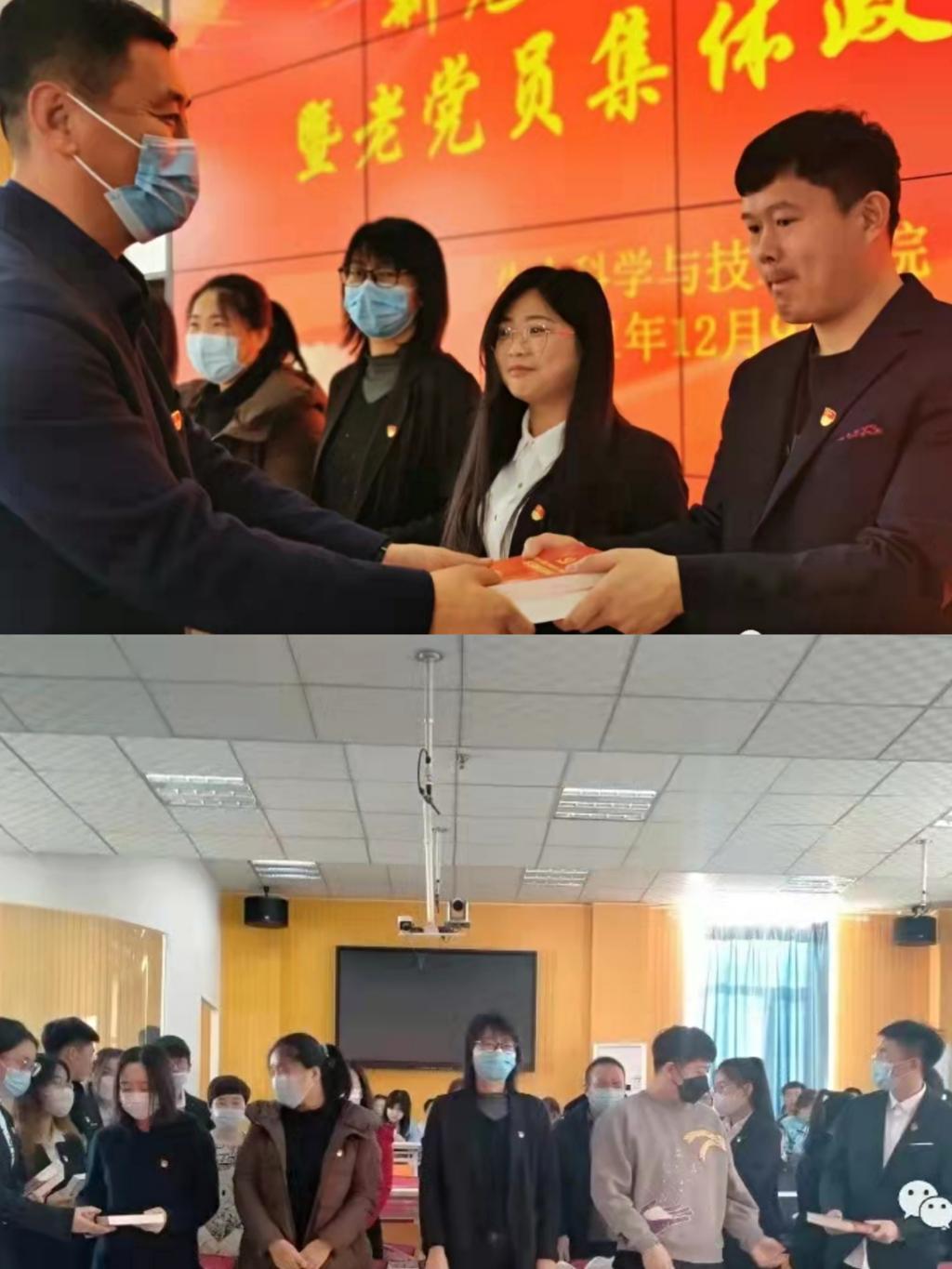 活动中,学院党委为董世鹏、刘学、李苗苗三位入党时间在下半年的老师送上了特殊的政治生日礼物——当年自己亲笔写下的《入党志愿书》复印件和《政治生日贺卡》。三位老师表示,作为新入职不久的教师,很荣幸能够参加这次集体政治生日活动,在今后的工作中一定不忘入党初心、牢记教书育人使命,立足岗位、为人师表、奋发进取,用实际行动践行对党的庄严承诺。随后,学院新发展学生党员代表向教师老党员赠送书籍作为政治生日礼物。学院党委为各党支部赠送了理论学习参考书籍。学院党委组织员吴禹岐老师带领全体新党员宣誓、老党员重温入党誓词。