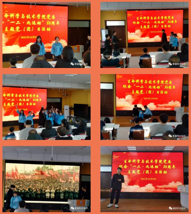 为纪念“一二·九运动”86周年,推进党史学习教育在大学生思想政治教育中取得实效,12月9日上午,生命科学与技术学院党委组织党员师生和共青团员代表共同开展了“纪念‘一二·九运动 做新时代有为青年’主题团日暨新党员入党宣誓老党员集体政治生日主题党日”活动,以丰富多样的学习形式和内容,师生同上党史“必修课”,深化学习和领悟十九届六中全会精神内涵。